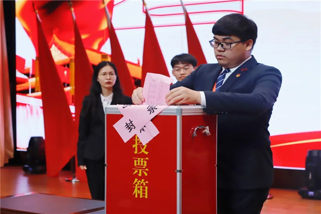 随后,第五届委员会选举正式开始。115位代表依次上台投票。此次选举活动公开透明,流程规范,坚持民主集中制的原则,采用无记名投票的方式。并由监票人进行监票、计票。本次选举强化了各位团员代表的主人翁意识,充分体现了代表们对新一届团委的高度信任和殷切希望。