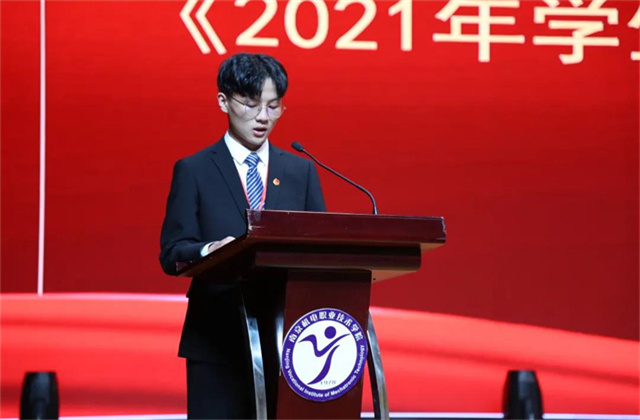 大二学生干部代表院团委学生副书记王仕昱同学在发言中给同学们分享了自己的几点心得,他表示,作为新时代的学生干部,我们要坚定理想信念,强化责任担当,你的态度,决定了你的高度。对同学,要加强服务与奉献意识;对自己,要提高自我价值;对老师,要提高实践能力。我们首先是学生,其次是学生干部。我们要做有理想、有追求的大学生,做有担当,有作为的大学生,做有品质,有修养的大学生。