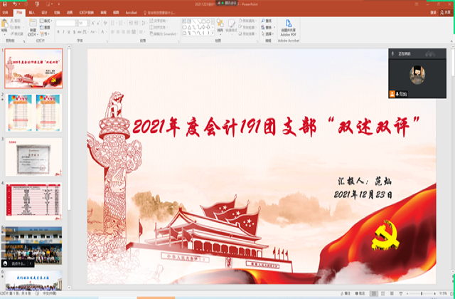 在人文社科系团总支书记杨军老师和各团支部团建指导员(辅导员)的带领下,各团支部书记认真阅读文件,深刻领会文件精神,制定清单,开展检查,撰写述职报告。在双述双评会议现场,各班级团支部书记在班级团支部团建指导员(辅导员)指导下,采用PPT汇报的方式,围绕学习习近平总书记系列重要讲话精神,结合十九届六中全会精神和任职以来履职尽责情况进行述学述职,分享了自己担任团支部书记职务以来的收获与体会,并对本学期任职期间的工作情况进行总结汇报,对未来工作提出了展望与规划。全体团员采取“面对面点评,背靠背评议”的形式,对团支书工作满意度进行投票,各团支部团建指导员对团支部书记的述职报告进行了点评。