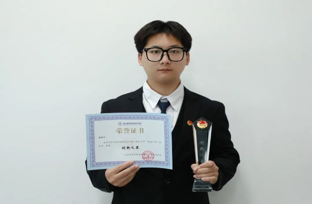 创新之星,潘城生,男,共青团员,乐投线上平台(集团)官方网站自动化系机电一体化2020级2班学生,担任蓝岛创客空间双创教育试点班第五期先锋班班长、机电一体化202班委。入校以来,积极申请专利,共计提交十项专利申请。积极开拓创新,参加各类创新型赛事,包括:互联网+全国双创大赛、“挑战杯”全国大学生课外学术科技作品竞赛、中英STEM创新大赛、中美青年创客大赛、全国大学生创新体验竞赛、江苏省机器人大赛、全国大学生机器人大赛ROBOTAC、学院“三创”大赛等。荣获第五届中英Stem创新大赛江苏省一等奖;第四届全国大学生创新体验竞赛三等奖;江苏省机器人大赛二等奖;第十七届江苏省大学生课外学术科技作品竞赛“黑科技”专项赛江苏省选拔赛二等奖;“建行杯”第七届中国国际“互联网+”大学生创新创业大赛江苏省选拔赛暨江苏省创新创业大赛三等奖;江苏省南京市“茉莉花杯”智能制造优秀奖;第七届江苏省科普公益作品大赛一等奖等。积极参加各类创新新型活动,包括:学院航天卫星荷载项目培训、协助组织“大国工匠进校园”主题活动、南京29中幕府山校区第三届科技节。
