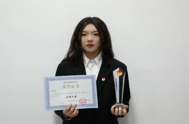 学习之星,吕雯妮,女,共青团员,曾任校团委宣传部干事,现任信息工程系团总支副书记、移动商务202班团支书、移动商务202班“抗疫”班助、润泽苑726舍长。2020—2021年度专业成绩第一,综合测评第一。2021—2022年度第一学期,学习成绩排名班级第一,综合测评第一名。学分加权平均分名列专业第一,取得跨境电子商务、商务数据分析与应用、移动UI设计、网店运营管理等7门专业课成绩单科第一,有17门课程在90分及以上。一次性通过计算机一级、英语三级B证书并且考取了助理电子商务师证书。
