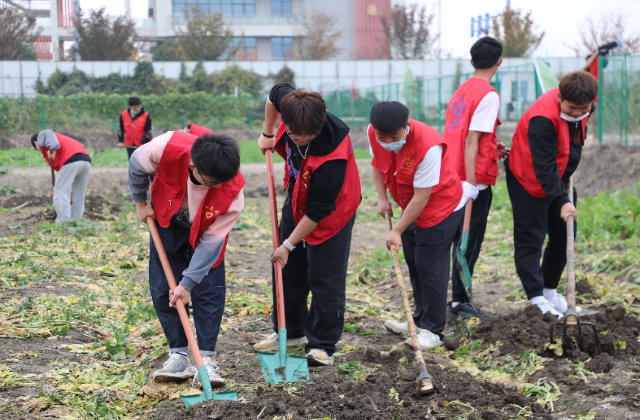 为加强大学生劳动教育,进一步贯彻创新德育工作新模式,弘扬劳动最光荣、劳动最崇高、劳动最伟大、劳动最美丽的精神,在我校广大学生中形成尊重劳动、热爱劳动、崇尚劳动的浓厚氛围,11月27日,在学工处处长张宝中,团委书记唐钰峤以及大学生生活服务与管理中心主任张进宝老师的带领下,团委的学生干部和青马班学员前往劳动实践基地开展劳动实践教育活动。