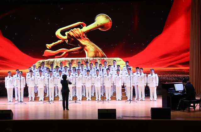 演出正式开始,在合唱团配合默契,歌声铿锵有力,随着乐队指挥手臂的摆动此起彼伏,响遏行云,歌声回荡在整个青春剧场,很快便带动了同学们的热情。一曲结束,台下响起了热烈的掌声。这就是青春使命,让同学们明白青春的意义。