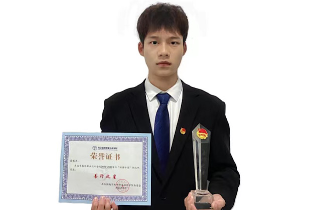徐晨光,男,汉族、共青团员,毕业于湖北省荆州市洪湖市贺龙高级中学,来自信息工程系软件技术213班。现担任校团委助理、校团委宣传部副部长、班级副班长、团支部副书记、心理委员、墨客书法社社长、群星争鸣辩论社副社长、思齐苑301宿舍长。在校负责乐投线上平台(集团)官方网站学工处微信公众号、乐投线上平台(集团)官方网站官方抖音号运营工作。在乐投线上平台(集团)官方网站学工处微信公众号打造【防疫锦囊】、【禁烟科普】、【学工周记】特色系列推文。【禁烟科普】系列推文的打造为我校师生的身体健康提供了可靠的理论支撑,拓展了我校健康教育的内涵,有力推动了校园精神文明建设。2022年度共参加校内为志愿服务60余次,累计服务时长超过500小时。