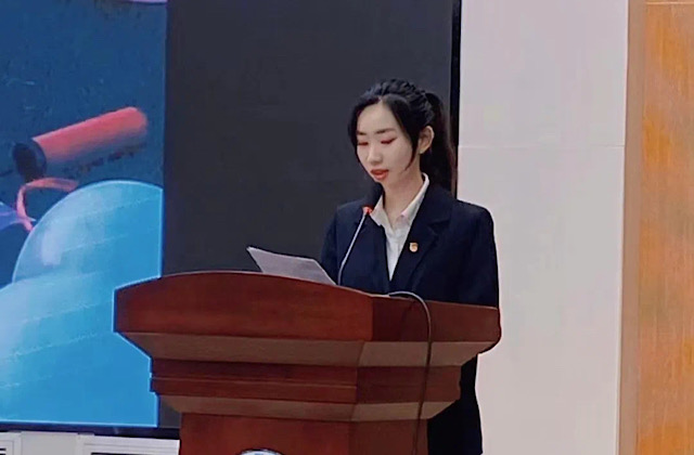 团总支副书记代表顾清颖回顾了过去一年的工作成果,并对学生组织的所有成员表达了衷心的感谢。她提到当好服务角色,发扬奉献精神是学生干部担负的首要职责,学生干部要自觉学习理论,积极向党组织靠拢;学习努力,成绩优异;在工作面前要有高度的责任感、积极进取的精神状态和较好的自我教育、自我管理、自我服务的能力;在生活中以身作则,谦和宽容,能在各个方面起到模范带头作用。