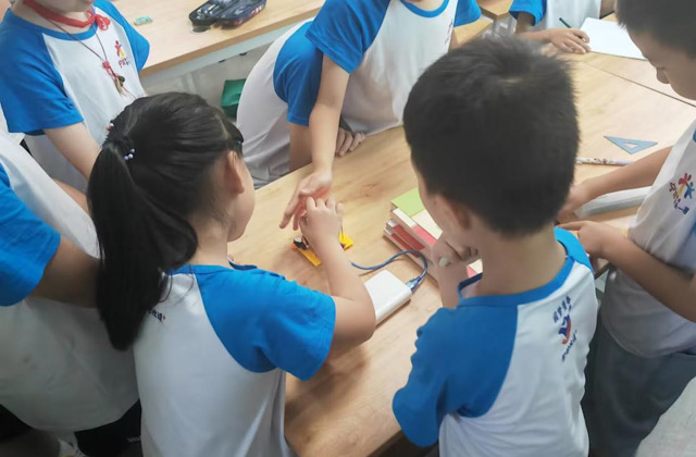 “爱心暑托班”志愿服务主要面向村上的小朋友,向他们介绍系部学生制作的科技创新作品,激发他们探索未知的积极性与主动性,其中重点向小朋友介绍的是智能坐姿提醒器。我系学子以耐心、细致的态度进行讲解,引发小朋友思考,让其在体验中感受科技的魅力。
