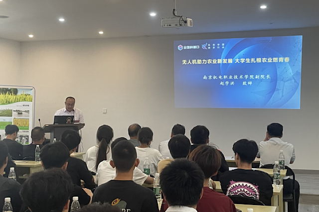 为推广无人机在农业生产中的应用,展示智慧农业领域的技术实力。9月19日, 2022级无人机应用技术专业的学生们和无人机社团的部分社员在高淳陈福明农场参加“无人机助力农业新发展,大学生扎根农业燃青春”科普日主题活动,开展无人机科普讲座、植保无人机飞行培训等系列活动。