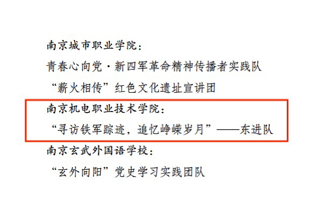 我校“寻访铁军踪迹,追忆峥嵘岁月——东进队”实践团队荣获江苏省“三下乡”社会实践活动优秀团队,团队负责人胡凯博荣获先进个人,团队指导老师贺竞男荣获先进工作者。