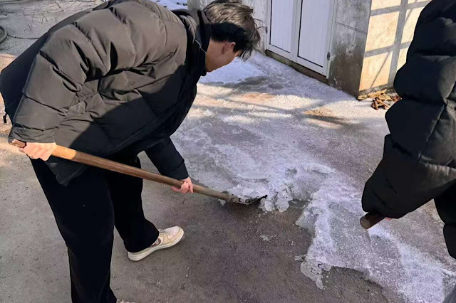 龙年第一场雪虽然给大家带来惊喜,但也对居民的日常出行造成安全隐患,给群众生活带来诸多不便。大家不畏严寒,迎着阵阵寒风,展现出了团结协作的精神。即使寒风凛冽,即使清理工作困难,但大家仍以饱满的热情,两人一伙、三人一群,配合默契,共同使用笤帚、大小铁锹等清雪工具,有序地进行着清理工作,为居民安全开辟出一条“暖心通道”。