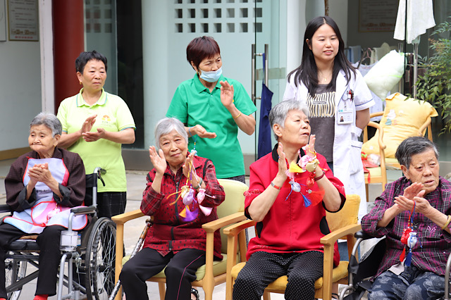 除了一起制作手工、送节日礼物之外,志愿者们还精心准备了一系列丰富多彩的活动。他们为老人们表演了精彩的文艺节目,其中包括动听的歌声、欢快的舞蹈等等,这让老人们感受到了年轻人的活力和热情。在活动中,志愿者们不仅为老人们带去了欢乐和陪伴,还从老人身上学到了许多宝贵的人生经验和智慧。