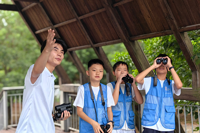 志愿者带领一群充满好奇心的小朋友走进了风景如画的固城湖水慢城。在绿意盎然的湿地中,小朋友们手持望远镜,跟随专业讲解员的步伐,近距离观察了白鹭翩跹、鱼翔浅底的生态景象,用眼睛记录下湿地生命的灵动与和谐。此次活动让小朋友们亲身体验了湿地生态的独特魅力,也激发了他们对自然环境保护的浓厚兴趣。