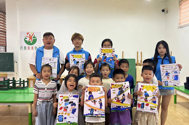 2024年7月18日,我们团队来到了第一站,赣榆区沙河镇兴泰艺术教育机构,为孩子们上了一节“意义非凡的创意课”。