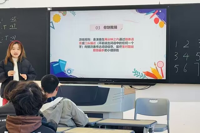 活动一开始,杜灿灿同学就用她热情洋溢的声音,将“英文缩写挑战”环节的游戏规则介绍得引人入胜。每个小组的同学都鼓足了劲儿,用清晰、准确且快速的语速念出绕口令,赢得了台下观众的阵阵喝彩。随后的“你画我猜”游戏更是趣味横生,表演者们绞尽脑汁,利用肢体语言和巧妙的口头描述传达信息,现场笑声不断,大家都沉浸在欢乐之中,享受着这个充满创意和互动的环节。
