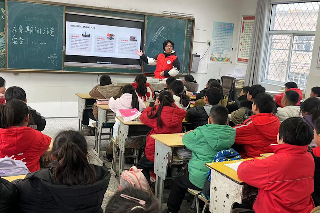 最后一站,实践团队来到泗阳县卢集镇小学,他们以生动的语言和精选的珍贵图片,为小学生们徐徐展开泗阳县当地的红色历史画卷。团队成员饱含深情地讲述革命先烈们的英勇事迹,引领同学们穿越回那段峥嵘岁月,深切体会红色精神的震撼力量。演讲后,红色知识抢答环节掀起高潮,学生们积极参与,争相抢答,不仅加深了小学生对家乡红色历史的了解,更在他们心中播下了红色种子,激发了爱国情怀和社会责任感,鼓励他们成长为担当民族复兴大任的新时代青年。