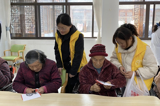 3月10日,青年大学生在高堂养老院用爱心和行动传递温暖,与老人同剪纸、话家常。志愿者们提前准备好彩纸、剪刀等工具。老人们兴致勃勃地向志愿者传授剪窗花技巧,志愿者们耐心倾听,与老人密切配合,现场欢声笑语不绝于耳。