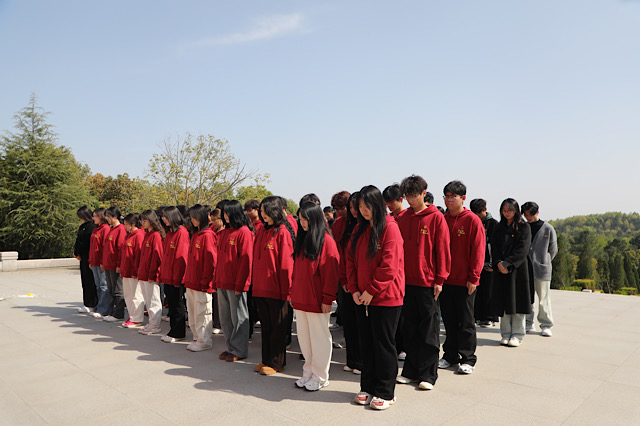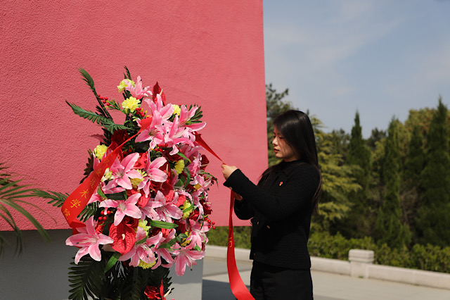 在庄严肃穆的纪念碑前,师生们整齐列队,神色凝重。低沉的哀乐响起,全体人员低头默哀,致以对革命先烈的深切缅怀。紧接着,青马班学员迈着坚毅有力的步伐,向纪念碑敬献花圈,校团委书记孙晓燕整理缎带,饱含着对先烈的无上敬意。