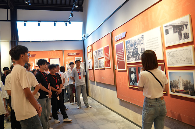 在抗大九分校历史陈列馆,大家参观了由抗战时期队部旧址改建的展厅。通过实物、图片、文字及多媒体展示,大家系统了解了抗大九分校从苏北启东到溧水云鹤乡的发展历程,以及师生们在艰苦环境中坚持教学、英勇战斗的光辉事迹。