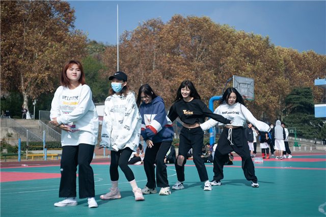 在11月15日以及12月8日,舞蹈社团的五位优秀大一社员叶凡,黄小酥,章文静,张露云,赵贝妮,以及大二优秀代表孙雪分别参与了,人文社科系以及信息工程系举办的篮球比赛,并且作为篮球啦啦队表演了开场舞蹈和中场休息舞蹈,用一首热情洋溢的串烧加上优美的舞蹈身姿点燃了全场的激情。