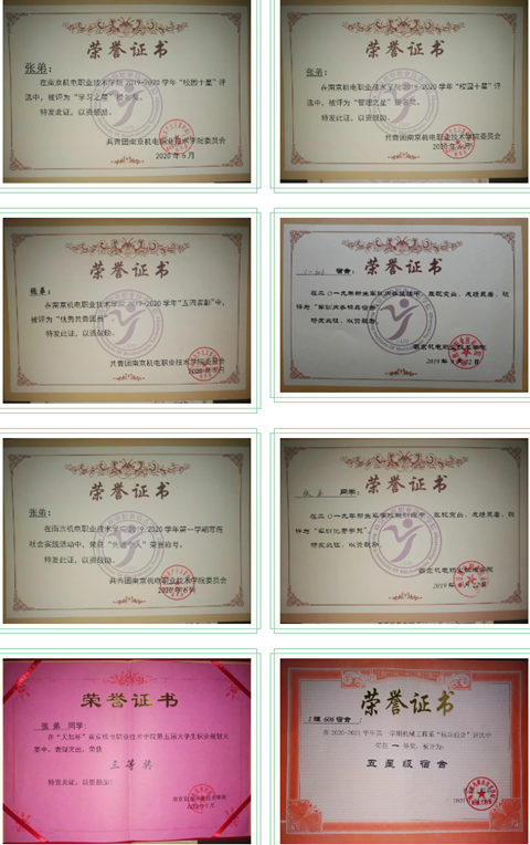 入学以来,荣获第三届全国大学生创新体验竞赛“创新价值”二等奖、2020年第二届全国《机械制图》万人联考江苏省二等奖、乐投线上平台(集团)官方网站第五届职业生涯规划大赛三等奖、2020江苏省机器人大赛F08室外安防巡逻组江苏省二等奖、院级优秀共青团员、军训优秀学员、2019-2020学年“校园十星”之“学习之星”、“管理之星”提名奖。
