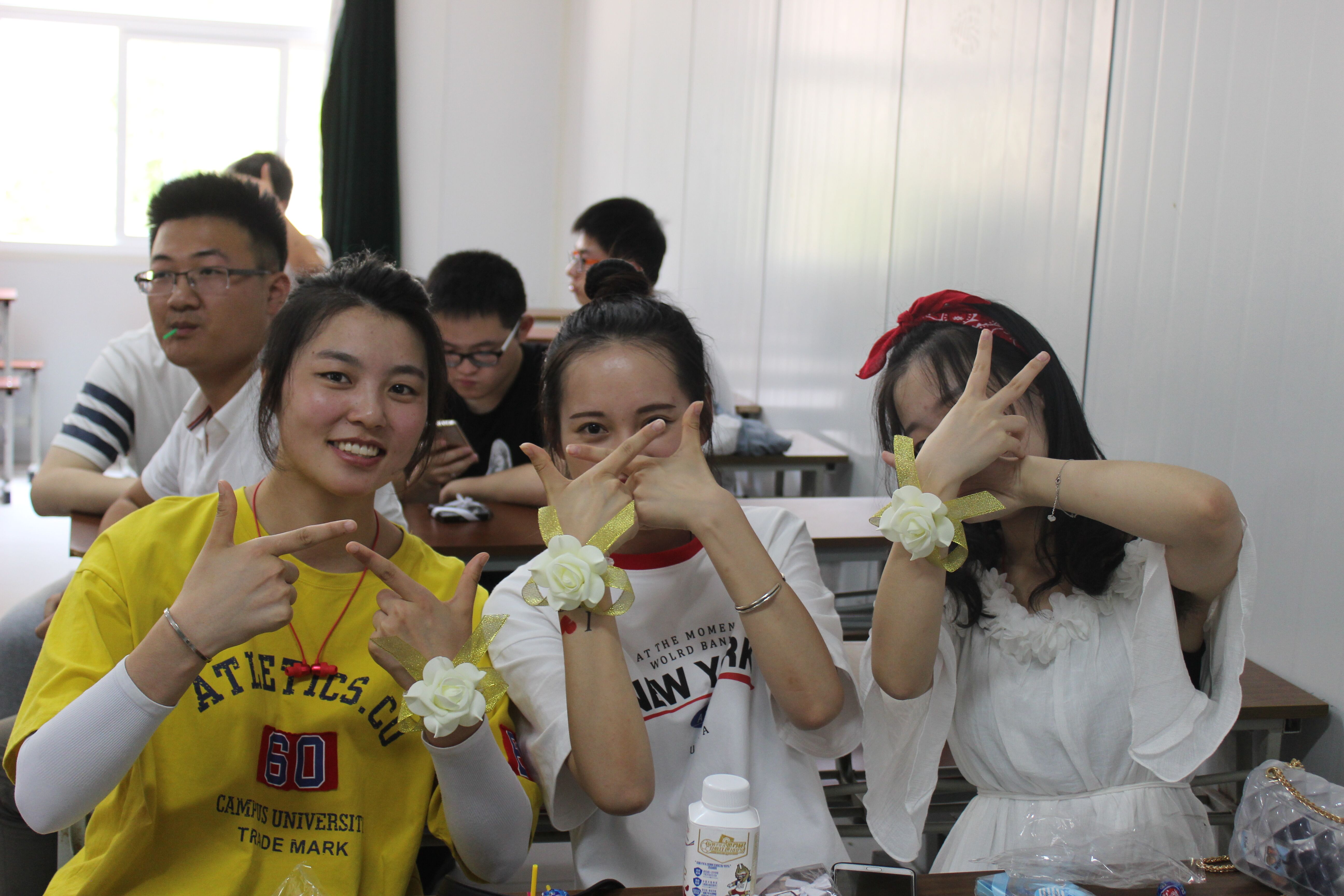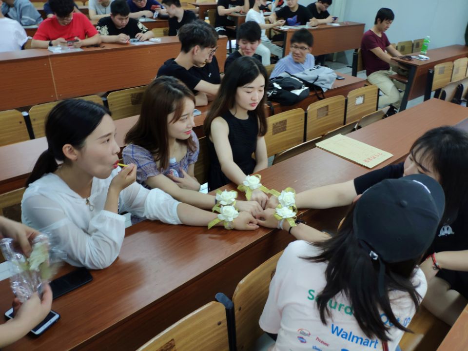 17级的学弟学妹们在这次毕业季活动上为即将毕业的学长们献上美好的祝福,学弟学妹们给即将离开的学姐们伴上美丽的手腕花,为学长们送上精致的书签作为毕业祝福,团总支书记张锦老师更是为即将临别的莘莘学子们送上了自己的最真挚的祝福,学生们互相赠礼合照,相互拥抱送别,情真意切的场面,让许多同学们流下幸福的眼泪。大家重温大学刚刚入学的那些青涩的时光,各班辅导员对班级里的同学加以祝福与鼓励,并且对大家以后的未来的道路进行忠告和教导,学生们对老师赠送献花表示感恩,用拥抱来表示千言万语无法表示的恩情。