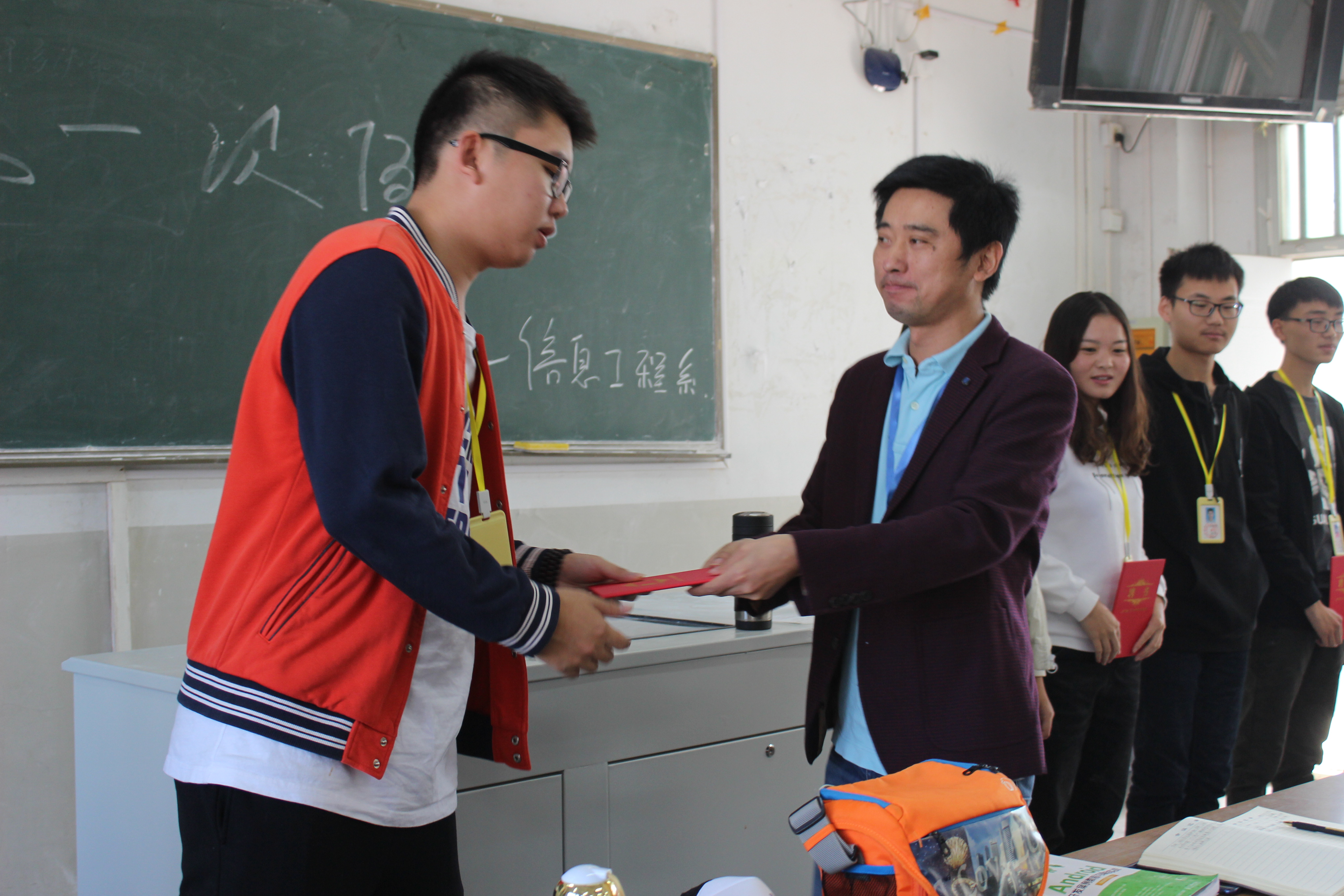 随后,胡书记为信息工程系团总支副书记孟佳敏同学颁发聘书,胡书记对信息工程系团总支过去的工作给予了充分的肯定,希望二年级的团总支学生干部再接再厉,取得更好的成绩。