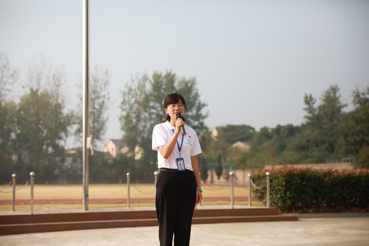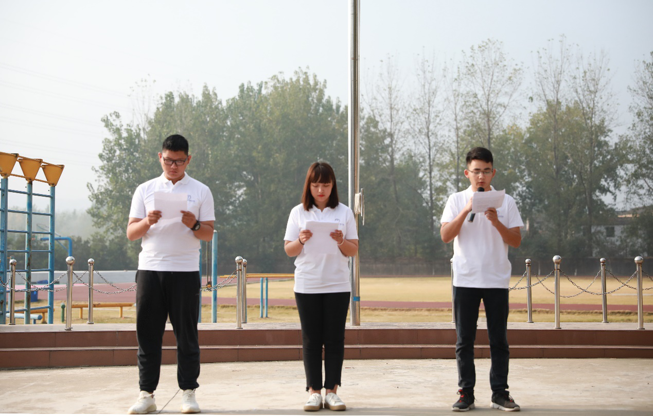 团总支学生代表周奎,陈莹,谈建进行题为《我和我的祖国》国旗下演讲,他们说道:少年兴则国兴,少年强则国强。我们肩负着跨世纪的历史使命,我们要适应时代的要求,牢记党和人民的重托,在德、智、体、美、劳全面发展,争当热爱祖国,理想远大的好青年;争当勤奋学习,追求上进的好青年;争当品德优良,团结友爱的好青年;争当体魄强健,活泼开朗的好青年。时刻准备着,用我们的钢筋铁骨,支撑起祖国坚强的脊梁!慷慨激昂的演说引发大家的共鸣,响起了雷鸣般的掌声,这也是青年一代向祖国的表白。