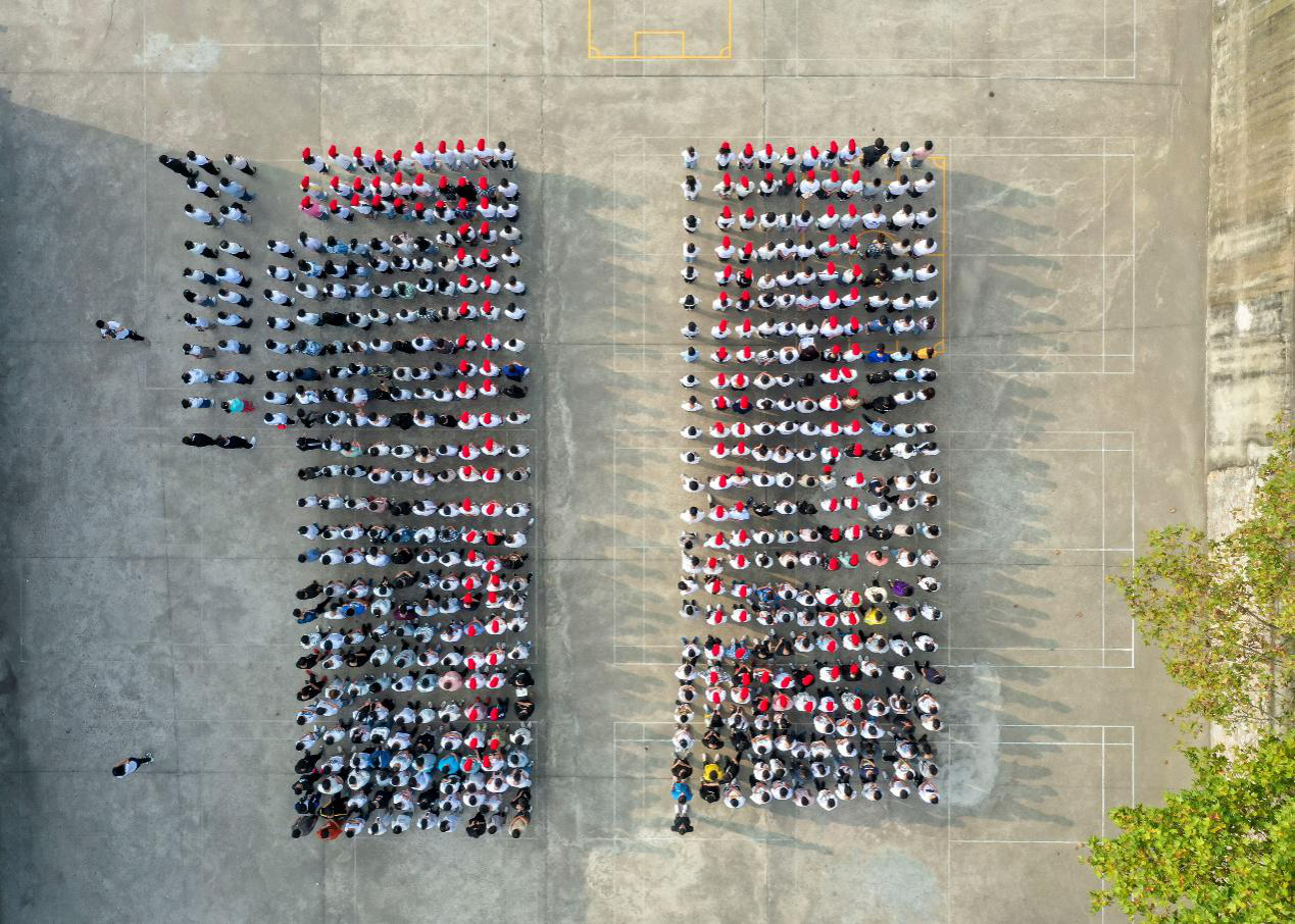清晨七点,迎着初升的朝阳,乐投线上平台(集团)官方网站650余名师生满怀崇敬之情聚集在操场,153名同学在队伍中用小红帽摆出“70”字样。