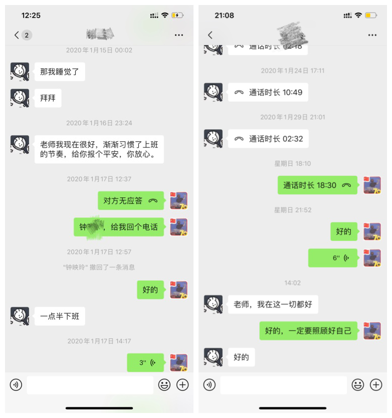 疫情发生后,郝老师及时给小钟同学通了电话,询问其详细情况后得知单位不仅为其提供员工宿舍进行居家隔离,且饮食方面也得到了保证,临挂电话前,再三嘱咐每天都要在班级群汇报个人健康安全。