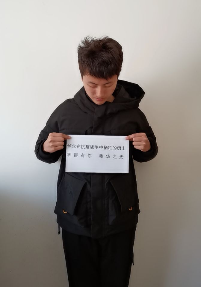 “致敬最可爱的人,是他们用逆行践行使命,守护我们每个家庭,守护我们每一个湖北人。”湖北黄冈的蒋丛明同学这样说。学生会主席张啸同学表示:“今日我们虔诚祭疫情中牺牲的英雄们,作为青年学子的我们更应该带着对生命的敬畏和尊重,踏实勤学地走好未来每一步”。