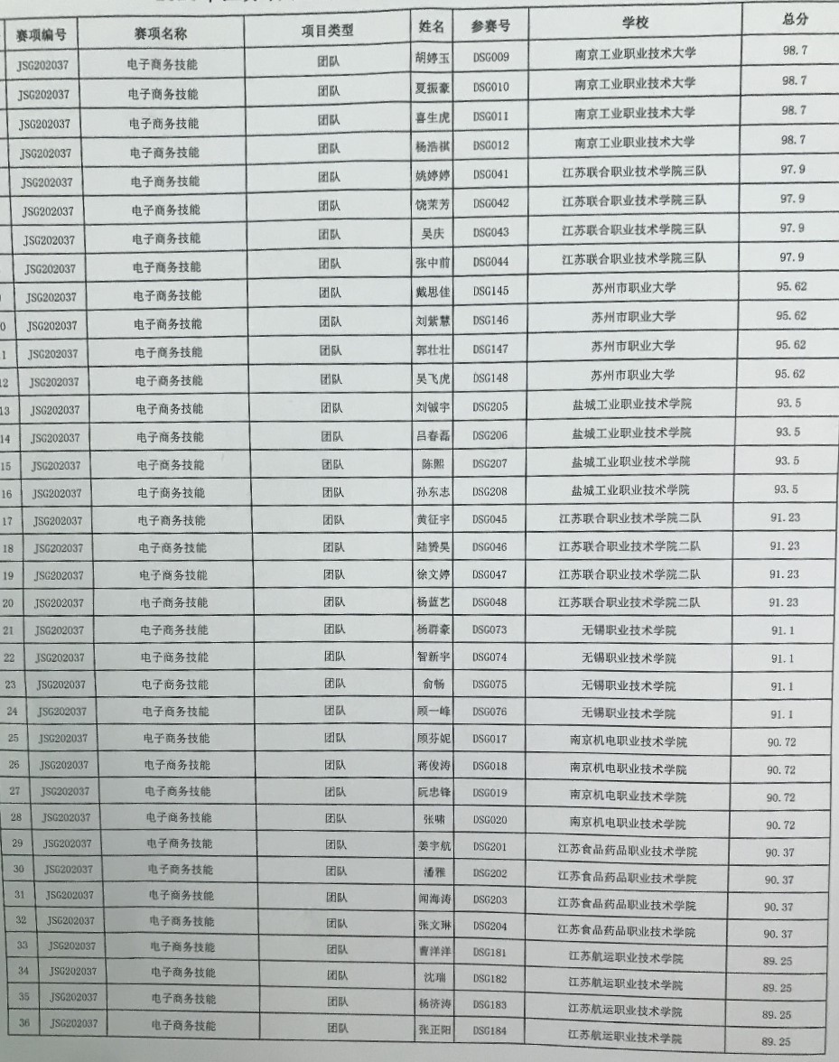 9月23日-24日,由江苏省教育厅主办的2020年江苏省职业院校技能大赛高职财经商贸大类“电子商务技能”赛项在南京工业职业技术大学举行,来自全省60所高职院校的240名选手报名参赛。我院刘娴和施炜老师指导的顾芬妮、阮忠锋、张啸和蒋俊涛4位同学所组成的团队在与传统强队的激烈博弈中以运营模块小组第1名,总成绩第7名的优异成绩荣获团队二等奖第1名,与一等奖仅差0.38分。