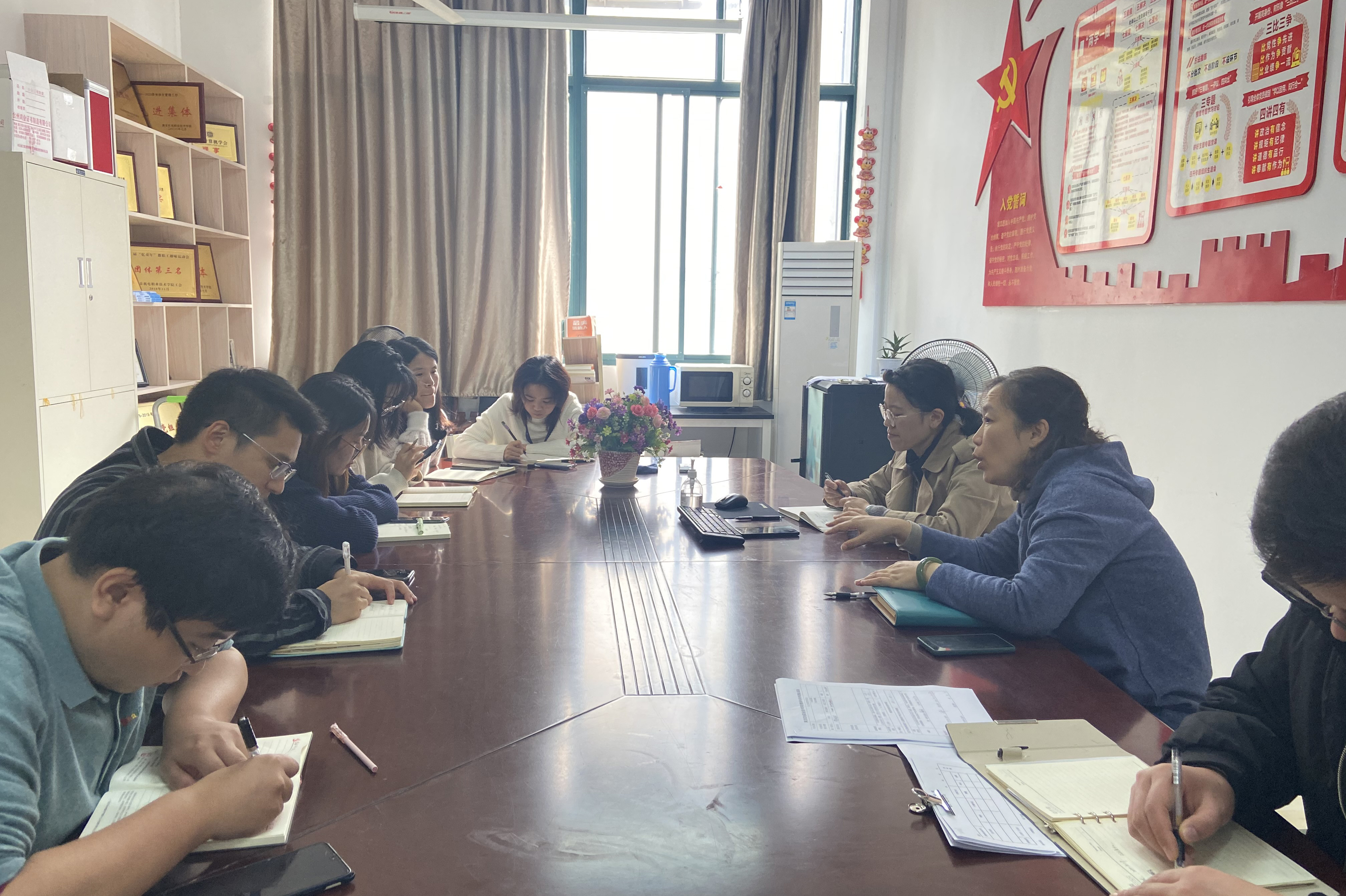 10月13日,通信团队在信息系会议室召开“学四史”研讨会。通信教研室全体教师参与研讨,会议由系部主任王玮主持。