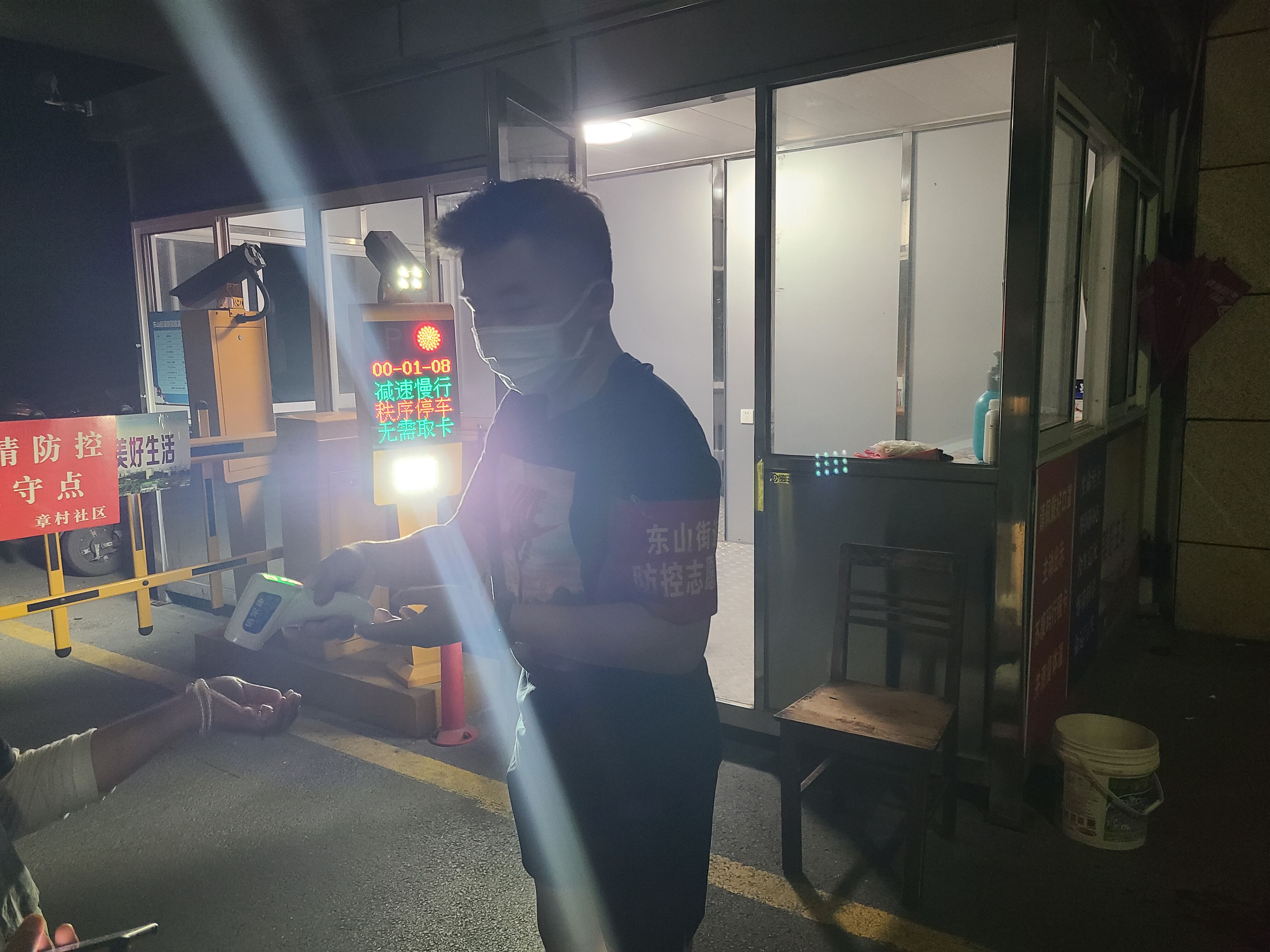 我主要负责的是守好第一道防线,每晚在小区门口给住户测量体温,查验苏康码,我认为在家乡出现困难的时候,我需要站出来做力所能及的帮助。在病毒流行的当下,我的工作可以有效阻止病毒在小区大规模的肆意传播,守好防线,担起青年大学生使命,希望南京早日战胜疫情。