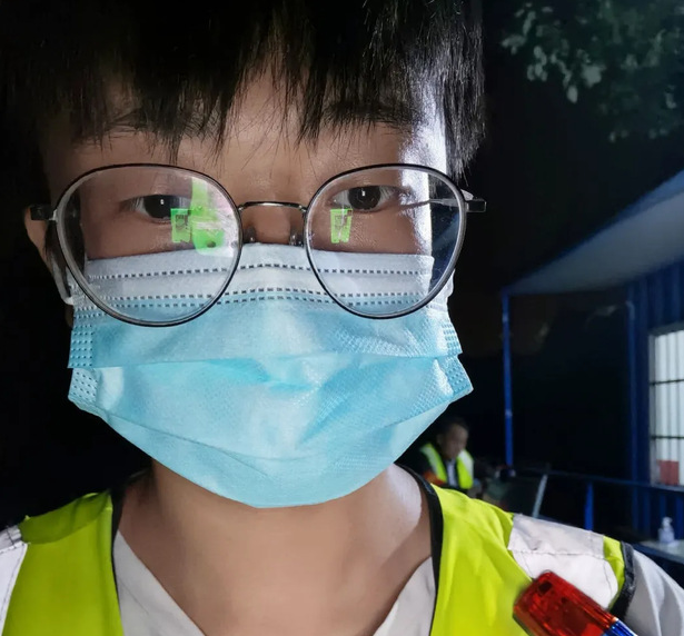 她说:“我们每天都穿着防护服,从早上5点到晚上11点,期间我们不断的为人员进行登记。每天晚上脱下防护服都是大汗淋漓,但作为当代青年大学生我感到无上的荣耀。”