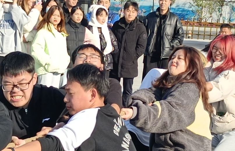 拔河比赛是体育项目中最集中体现“团结就是力量”的一项活动。一条长绳把一群人紧紧的连在一起,一声哨响,人人用力,在这短暂的时刻,大家都为一个共同的目努力。此次比赛中,队员们都能够坚持不懈,为集体的荣誉而发挥自己最大的能力,展现出良好的团队意识和集体荣誉感。