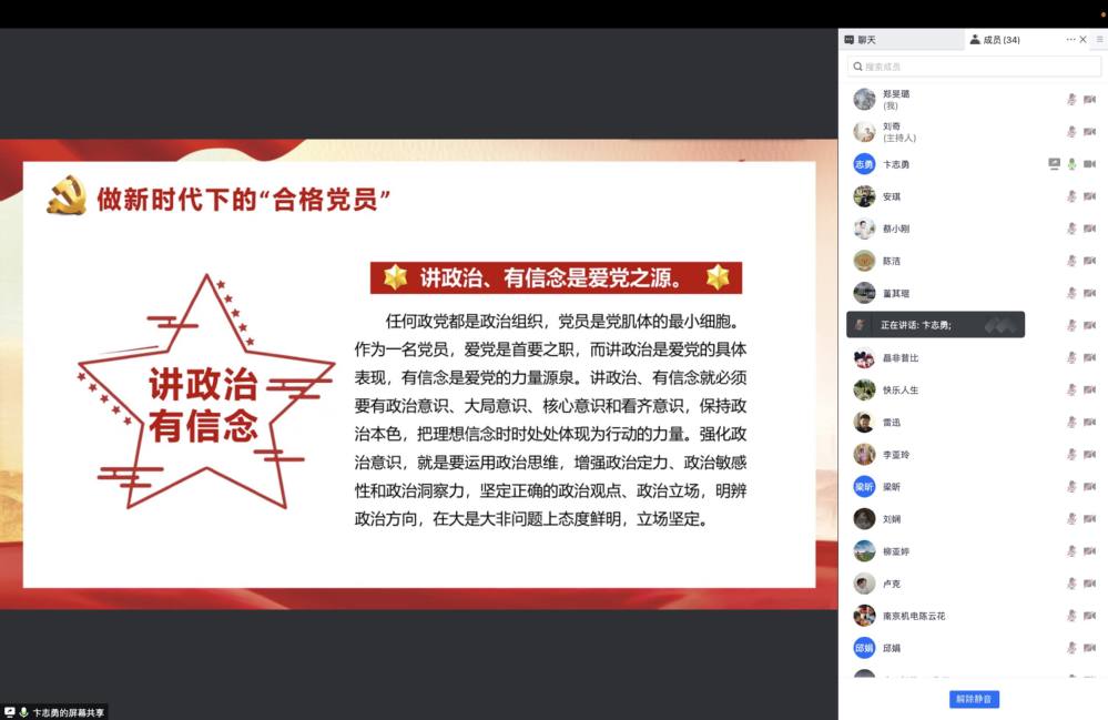 为喜迎二十大, 引导全体教职工增强“四个意识”、坚定“四个自信”、做到“两个维护”,对“国之大者”领悟到位。4月19日下午,信息工程系党支部依托腾讯会议平台,开展了线上政治理论学习,本次学习的主题是 “喜迎二十大,永远跟党走”。支部书记吴伟萍主持会议,支部全体党员及普通教职工参加学习。