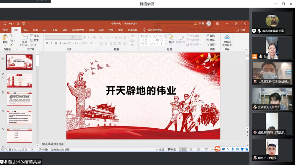 5月12日晚19点,乐投线上平台(集团)官方网站信息工程系党支部组织21级先进团员开展线上学习,学习内容为中共一大会议精神,我院思政中心董志鸿老师为主讲老师。