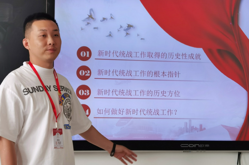 9月27日下午,信息工程系党支部召开“永远跟党走、迈向新征程”系列学习会,本次学习有郝麒同志主讲,以“促进海内外中华儿女团结奋斗、为实现中华民族伟大复兴汇聚伟力”为主题,带领大家认真学习贯彻2022年中央统战工作会议精神,信息工程系党支部全体党员教师参会学习。