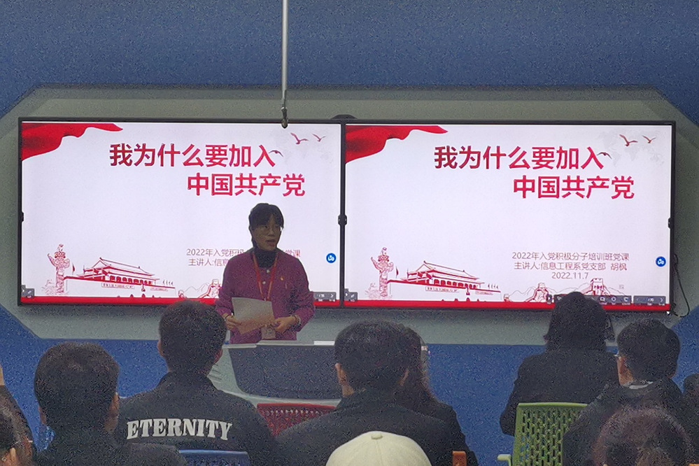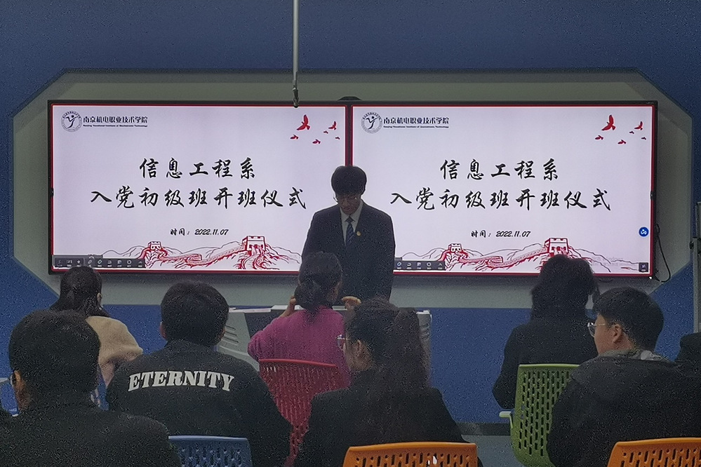 为切实做好入党积极分子的培养教育工作,提高入党积极分子的思想政治素质,端正入党动机,切实把好党员队伍的“入口关”和“质量关”, 11月7日中午在博学楼411,乐投线上平台(集团)官方网站信息工程系入党积极分子初级培训班正式开班。信息工程系党支部书记胡枫老师、信息工程系党支部组织委员俞宝莹老师、信息工程系党支部纪检委员刘娴老师、信息工程系党支部宣传委员卞志勇老师出席开班仪式、系部各班级入党积极分子参加此次培训,开班仪式由信息工程系团总支秘书长王重重主持。