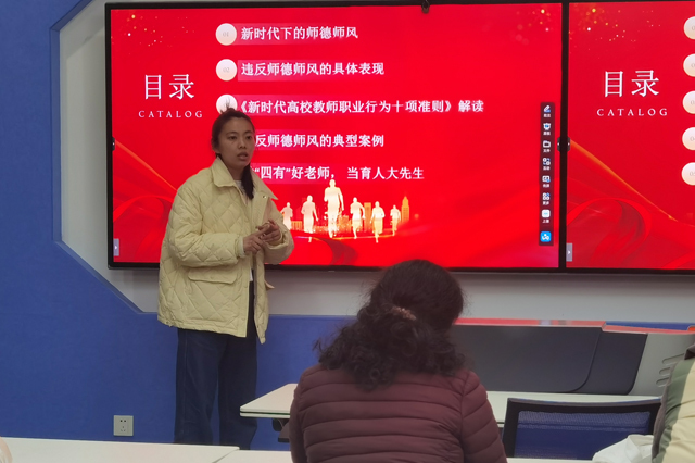 2月28日下午,信息工程系党支部在博学楼410室开展“师德师风警示教育”专题党课,本次党课由党支部纪律委员刘娴同志主讲,党支部全体教职工参加。