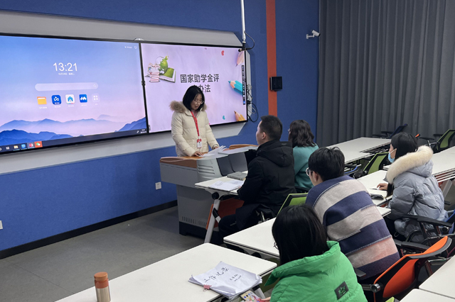 随后,陈莉娟老师详细讲解了学校大学生资助管理中心国家助学金评审工作的具体办法,学校综合考虑各系的学生人数、家庭经济困难学生比例等情况进行国家助学金名额分配,国家助学金的奖励标准分2300、3300、4300元三档发放,资助经费分春秋两季发放。会议中,陈老师还介绍了国家助学金申请条件、评审程序、受助资格取消等内容,提醒辅导员老师认真落实每学年的家庭经济困难学生认定工作,以确保公平、公正、公开地开展国家助学金评定,让每个家庭困难学生的学习和生活得到基本保障。