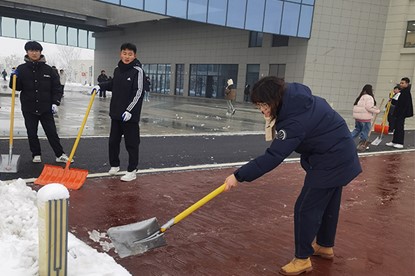 在清扫过程中,师生们不仅清理了积雪和冰块,还对路边的树木、草坪进行了清扫,确保校园环境的整洁。同时,他们还提醒行人注意安全,避免因路面湿滑而发生意外。