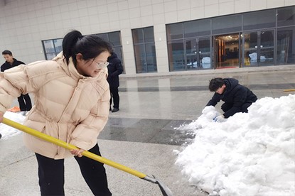 12月19日清晨,信息工程系的“团团们”在党员老师的带领下早早地来到弘德楼库房,拿起扫帚、铁锹等工具,准备开展清扫活动。在系领导的带领下,师生们齐心协力,迎着寒风,开始清扫积雪。他们先将积雪堆积在路边的雪堆上,避免影响道路通行。然后,用铁锹将雪块铲除,再用扫帚将路面的冰块扫除。在师生的共同努力下,原本被大雪覆盖的道路逐渐变得清晰起来。