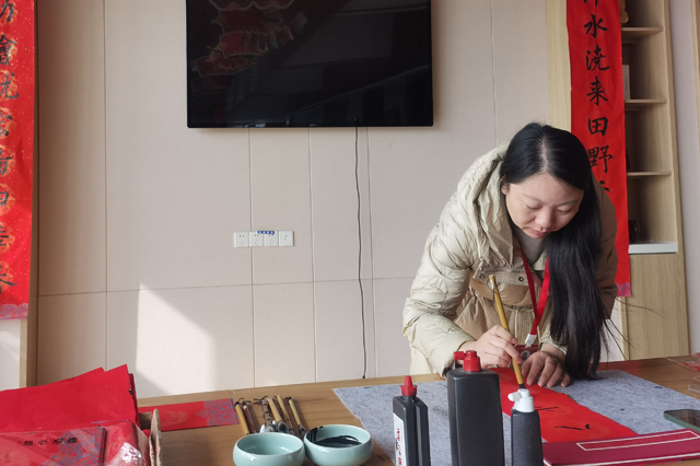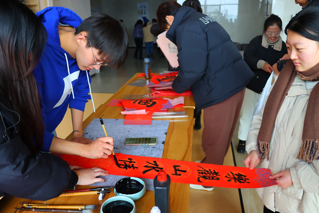 活动现场热闹非凡,墨香四溢。师生们纷纷挥毫泼墨,笔走龙蛇,书写出一副副精美的春联和福字。经过3个多小时的辛勤创作,加上前期准备好的作品,活动共计送出五百多套春联和福字。这些充满吉祥如意、平安和谐寓意的作品,为即将来临的春节增添了浓厚的喜庆氛围。