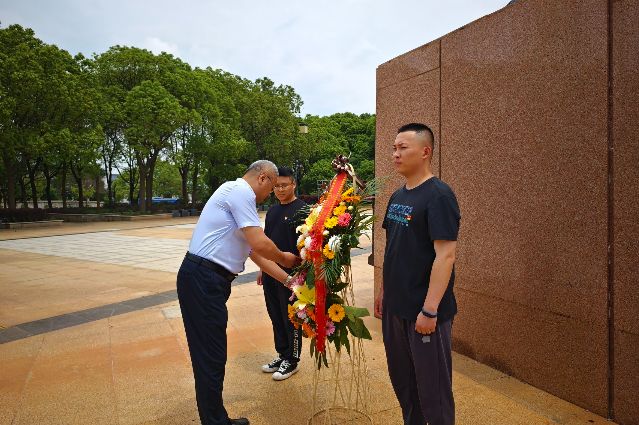 随后,全体党员步行至“苏南抗战胜利纪念碑”前,郝麒、张进宝同志向革命先烈们敬献花篮,刁爱军同志整理挽联。同志们怀着无比崇敬的心情,默哀致敬,深切缅怀烈士不朽功绩,追忆伟大抗战精神。