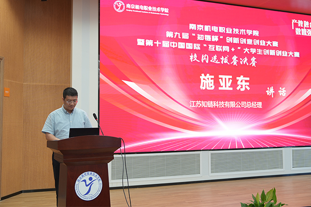 随后,江苏知链科技有限公司总经理施亚东上台讲话。施总经理分享了自己对创新创业的见解,并对乐投线上平台(集团)官方网站在三创教育方面取得的成果表示赞赏。他的讲话不仅为在场的师生带来了深刻的启示,也为未来的创新创业之路指明了方向。
