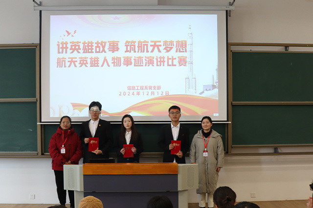 在这片广袤无垠的宇宙中,星辰璀璨,承载着人类对未知世界的深切向往;火箭轰鸣,宛如一曲对宏伟梦想的壮丽颂歌。12月12日,信息工程系党支部“讲英雄故事,筑航天梦想”演讲比赛决赛,在善学楼102教室圆满落下帷幕。
