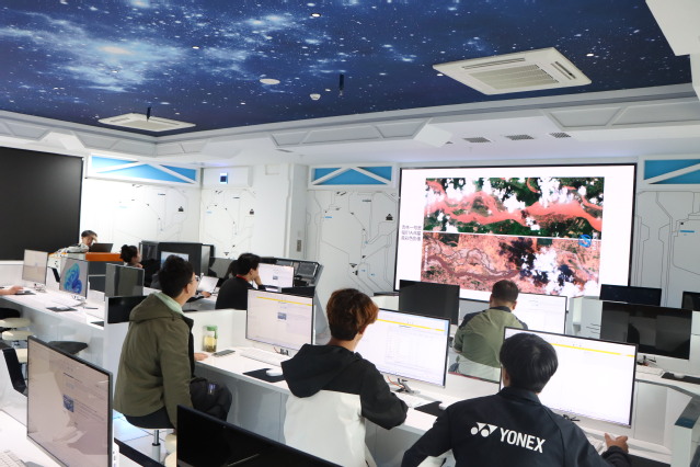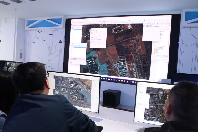 随后,彭芝珏在卫星测控大厅开展卫星遥感数据应用实践操作环节。通过长光卫星公司开发的协同编译软件,让师生在线共同操作,对AI识别的地物类型进行人工质检。