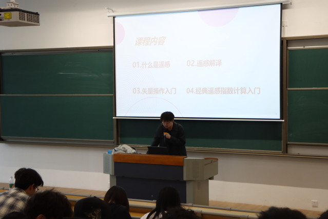 4月16日,由工程师彭芝珏主讲卫星遥感数据应用专题实践。首先,彭芝珏给卫星班的同学开展遥感数据应用专题授课,他从什么是遥感、遥感解译、矢量操作入门、经典遥感指数计算入门深入浅出地介绍了卫星遥感系统的组成、数据获取方式以及常见的数据格式。