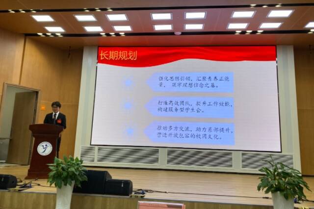 随后,信息工程系第十六届学生会副主席魏佳欣作信息工程系学生工作报告。报告总结了过去一年里信息工程系学生会在思想引领、组织建设、创新发展、文化体育、社会实践等方面所取得的显著成绩。同时,还提到不足和改进之处,包括加强活动宣传、提高活动质量、加强与同学们的沟通等。