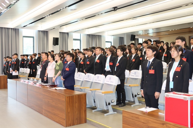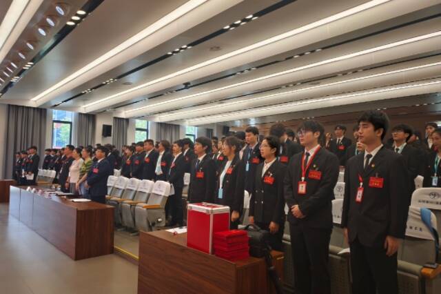 大会伊始,全体与会人员肃然起立,共同奏唱国歌。随后,系团委书记沈歆岩上台发表了热情洋溢的贺词。她首先深情回顾了信息工程系学生会过去一年的辛勤付出和取得的显著成绩,对大家的努力和奉献给予了高度评价。同时,她也对新一届学生会委员寄予了殷切的期望和美好的祝愿,希望他们能够继续发扬优良传统,勇攀新高峰,为系部的发展贡献更多的力量。